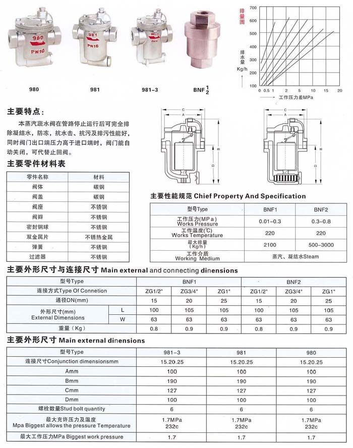 二、熱靜力式蒸汽疏水閥 主要技術(shù)參數(shù)